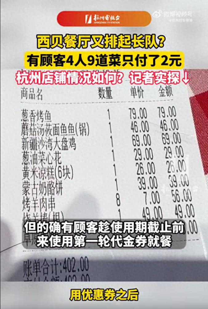 近日,有网友在社交平台上称,这两天全国各地西贝餐厅又开始排长队了,之所以排队,是因为发放了大额的就餐代金券。